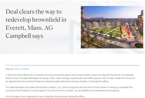 Deal Clears the Way to Redevelop Brownfield in Everett, Mass A.G. Campbell Says